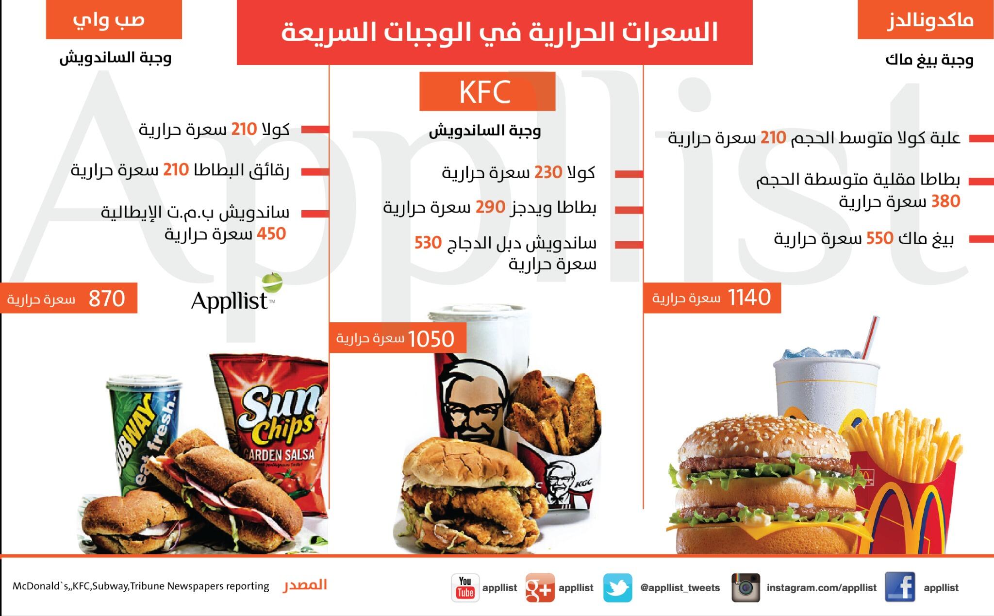 السعرات الحرارية مطاعم كنتاكي Kfc مركز ليـنا للإستشارات